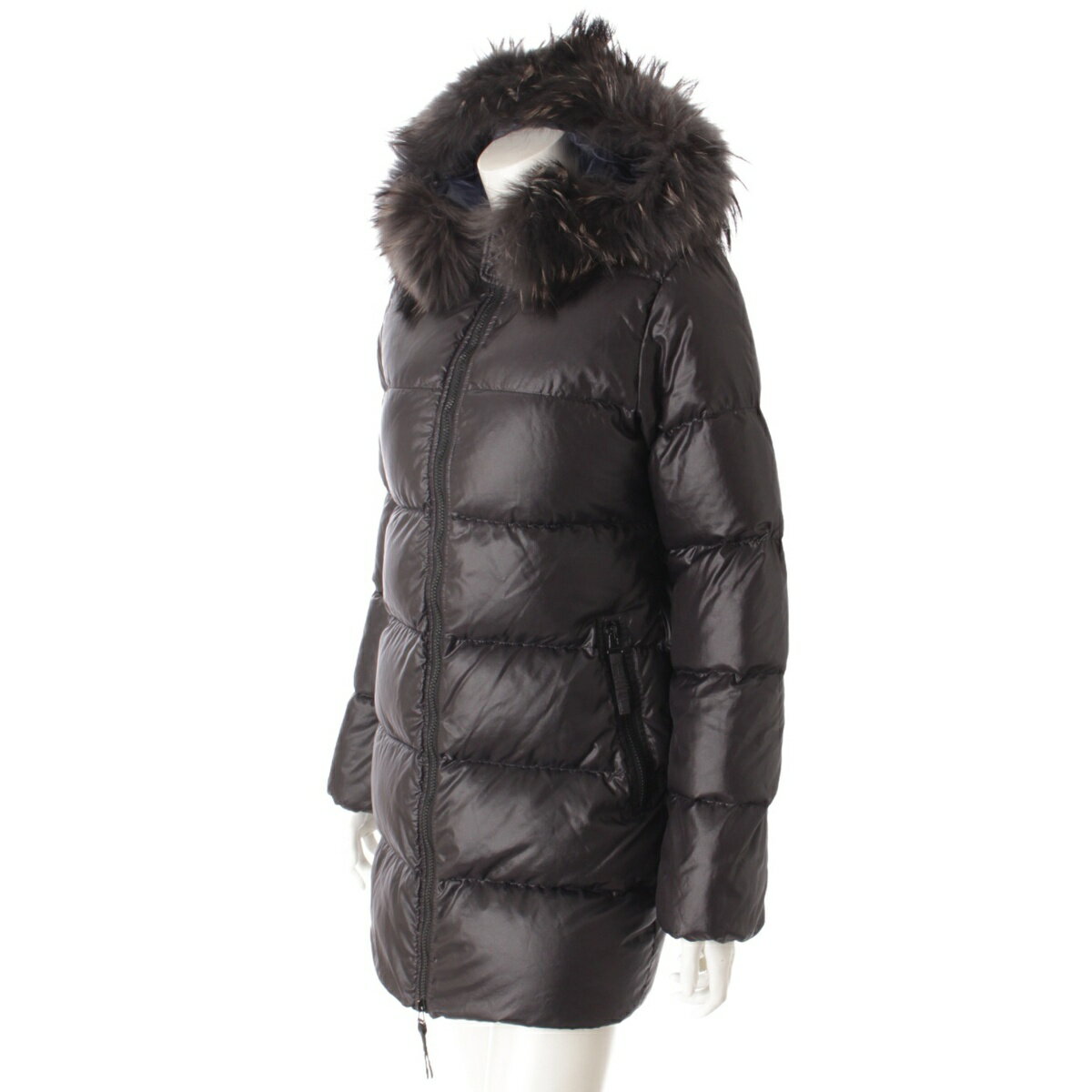 【デュベティカ】Duvetica フード付き ダウンコート ネイビー 42 【中古】【鑑定済・正規品保証】52574