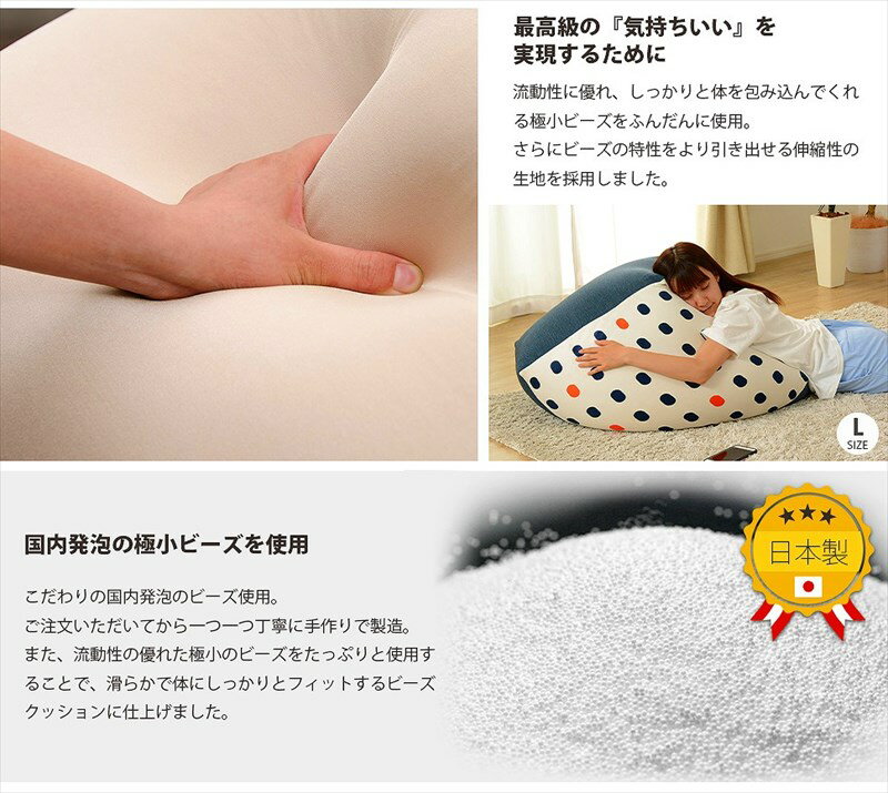 ふわもち ビーズクッション XL サイズ 【送料無料】 特大サイズ スクエア 丸型 大きい おしゃれ 安い ビーズソファー 激安 日本製 洗える カバー付き